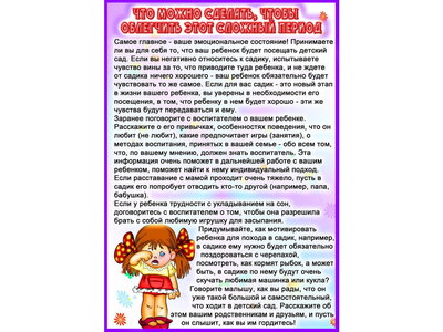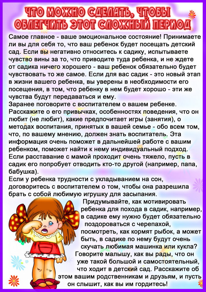 • Ребенок привыкнет быстрее, если сможет строить отношения с