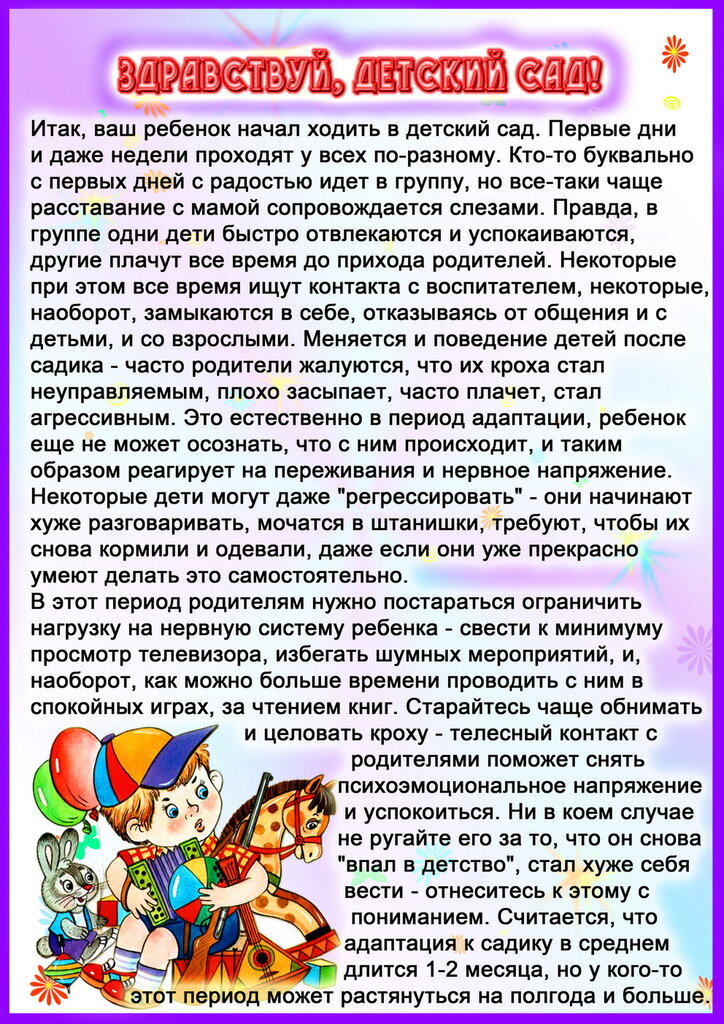 • Не удивляйтесь, если вы уже справились с проблемой адаптации, а она опять возникла после болезни или больших выходных, когда ребенок