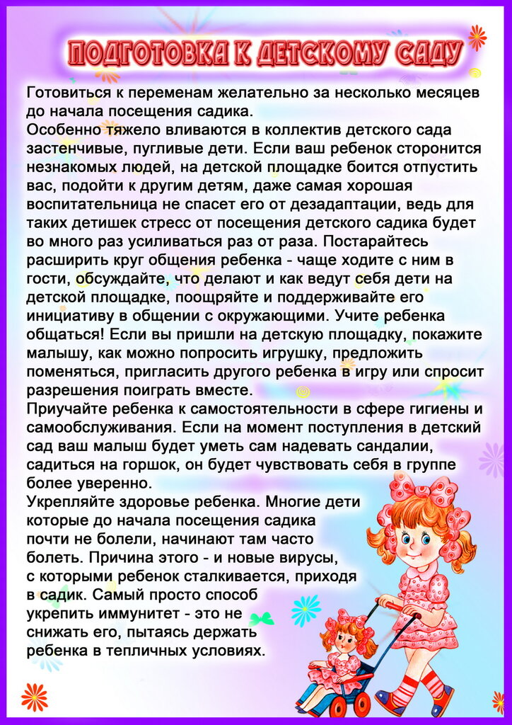 Как должен быть подготовлен ребенок к периоду адаптации?